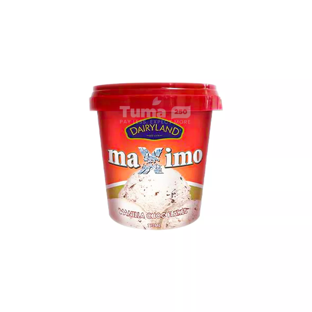 - Dairyland Maximo Vanilla Choc Flakes Ice Cream 175ml offers an irresistible blend of creamy vanilla ice cream paired perfectly with luscious chocolate flakes. Made with high-quality ingredients, this compact serving is ideal for satisfying your cravings while delivering a moment of pure indulgence. Whether it’s a treat after dinner or a midday pick-me-up, Dairyland Maximo brings a decadent dessert experience right to your fingertips.