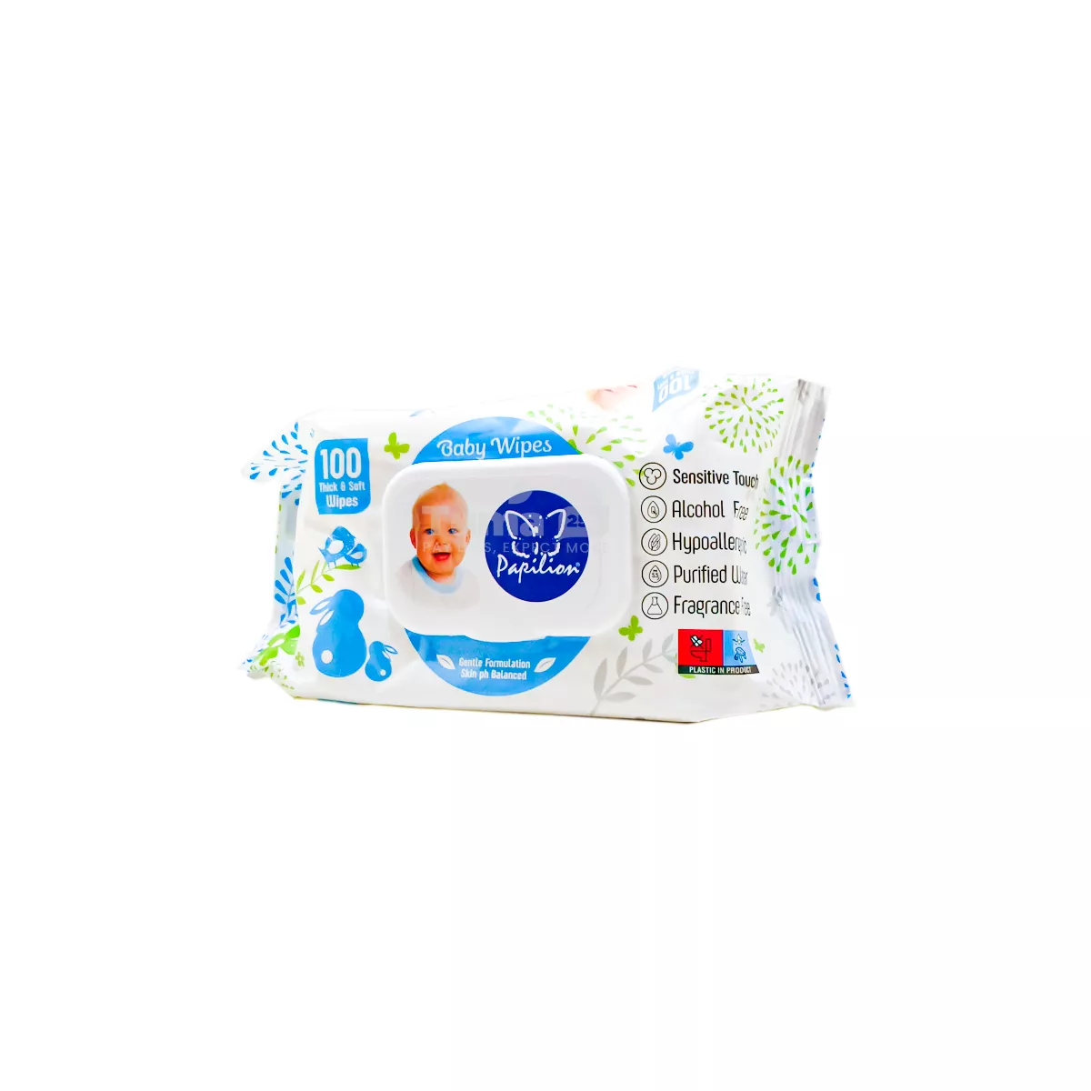 - Papilion Baby Wipes are made from soft, durable material that’s sensitive to your baby’s skin. Free from harmful chemicals, they are crafted to protect your little one from irritation and discomfort. Infused with mild moisturizers, these wipes help maintain your baby’s natural skin balance while keeping them fresh throughout the day. Plus, their hypoallergenic formula is dermatologically tested, giving you peace of mind with every use.