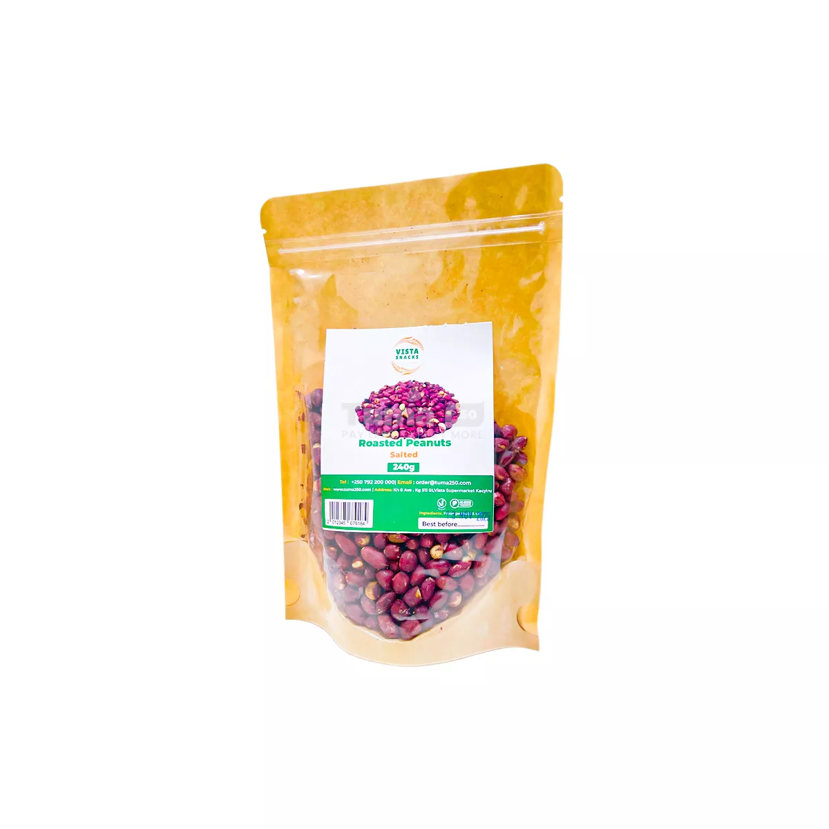 - Vista Salted Roasted Peanuts 240g offer a delightful snack experience that combines the crunch of premium-quality peanuts with a flavorful touch of salt. Carefully roasted to perfection, these peanuts are a testament to quality craftsmanship, ensuring each bite delivers a harmony of texture and taste that’s hard to resist.