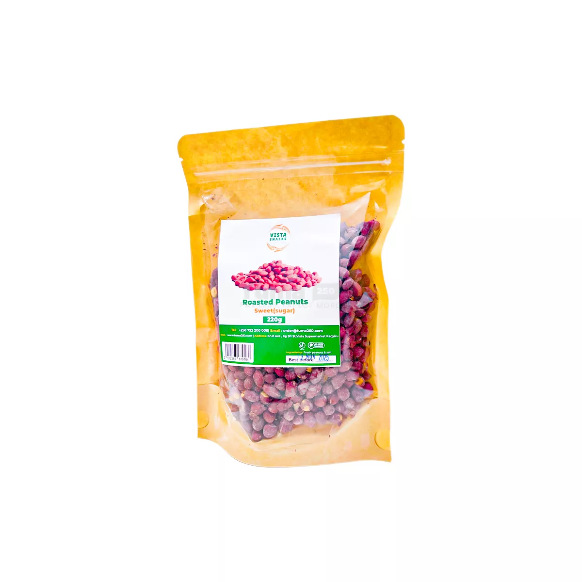 - Only the finest peanuts make their way into our Vista Sweet Roasted Peanuts. Each batch is selected for its quality, ensuring you get well-rounded, nutrient-packed snacks. The roasting process brings out the natural richness and nuttiness of the peanuts, while our sweet coating complements it without overpowering the flavor. Packaged in a convenient 220g size, it is perfect for sharing or enjoying all by yourself!