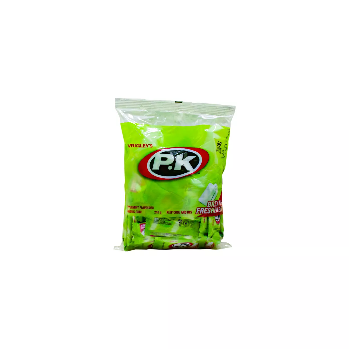 - Wrigleys PK Peppermint Flavoured Chewing Gum brings you a burst of freshness in every chew. Specially crafted for those who crave a refreshing experience, this chewing gum delivers a minty and invigorating peppermint flavor that lasts longer than ordinary gums. With 50 individually wrapped pieces in a compact 240g package, it’s perfect for on-the-go freshness, keeping you confident throughout your day.